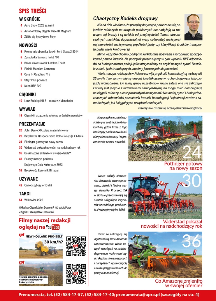 Miesięcznik Rolniczy Przegląd Techniczny – wydanie 2/2023. Wydawca APRA sp. z o.o.