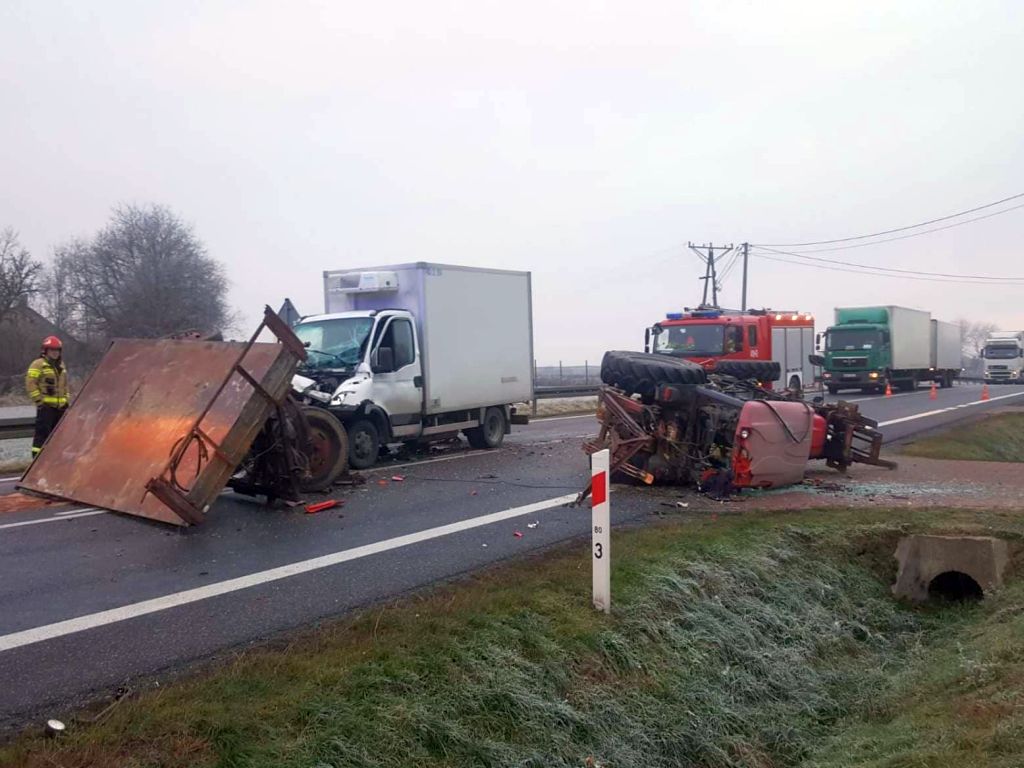 „Dostawczak” roztrzaskał ciągnik z przyczepą