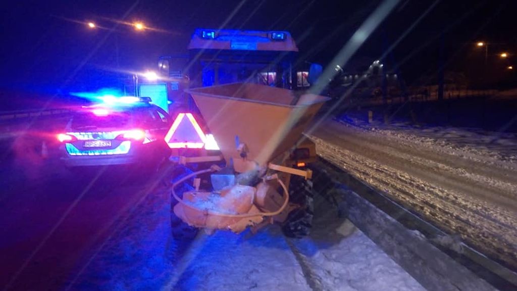 "Po dojeździe na miejsce dowódca stwierdził, że doszło do zderzenia samochodu dostawczego i traktora z osprzętem do odśnieżania. Na miejscu obecny był już zespół ratownictwa medycznego i policja. Dwie osoby poszkodowane z traktora znajdowały się w karetce. Kierowca busa, który podróżował sam, nie wymagał pomocy medycznej" – relacjonuje jednostka Ochotniczej Straży Pożarnej w Chęcinach.