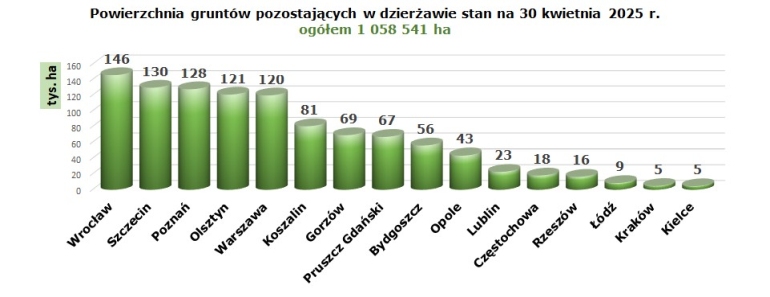 Według stanu na koniec kwietnia 2025 r. w dzierżawie pozostawało 1 058 tys. ha na podstawie 70,7 tys. umów dzierżawy, głównie na terenie działania oddziałów: we Wrocławiu, Szczecinie, Poznaniu, Olsztynie i Warszawie.