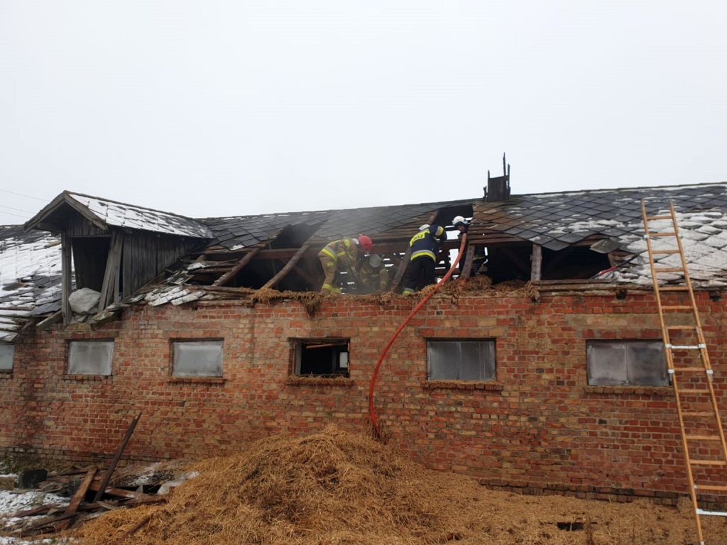 Pół setki sztuk bydła trzeba było wyprowadzić poza oborę, której poddasze stanęło w ogniu. Na miejsce przybyło 8 zastępów straży pożarnej z 31 ratownikami w składzie.
