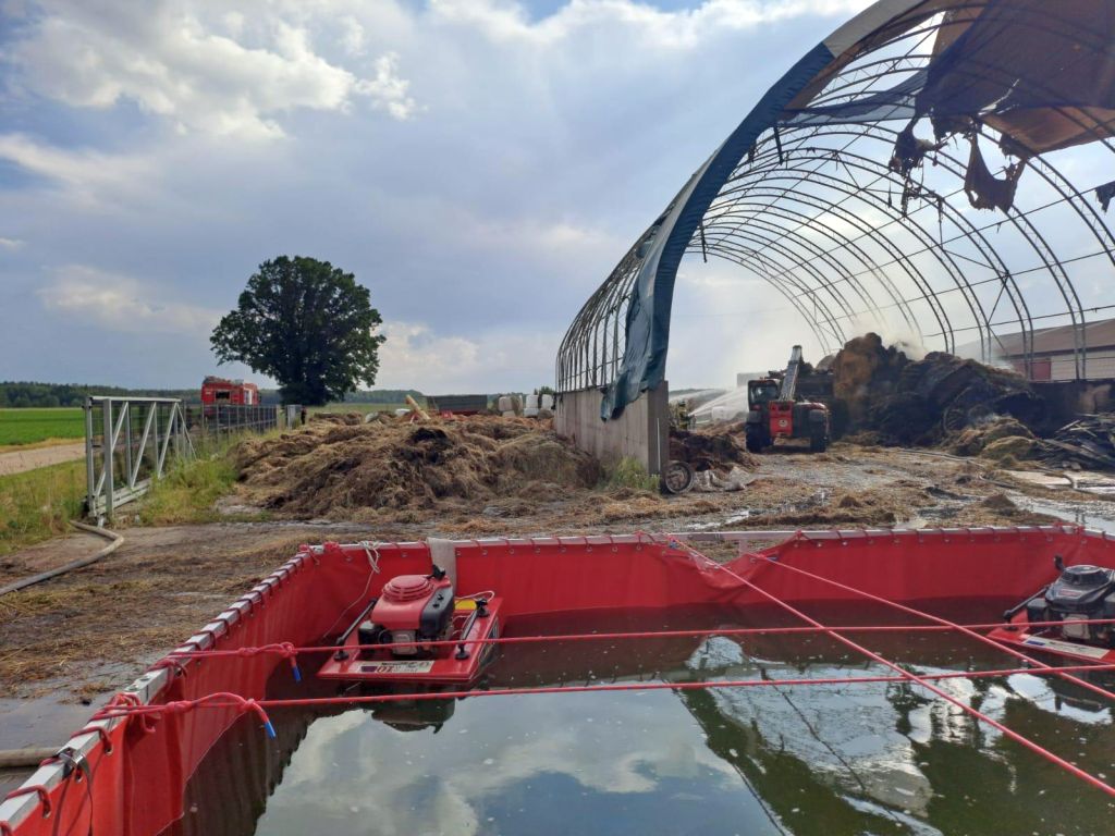 12 zastępów straży pożarnej brało udział w akcji gaszenia pożaru dużej hali magazynowej w gospodarstwie w miejscowości Leopoldowo (pow. łomżyński, woj. podlaskie). W obiekcie składowano spore ilości słomy, sianokiszonki i nawozów.