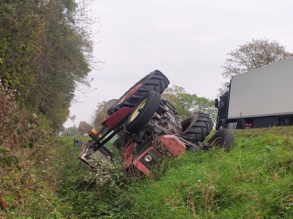 Pijany kierowca doprowadził do wywrócenia się ciągnika do rowu. Foto_KPP Wschowa
