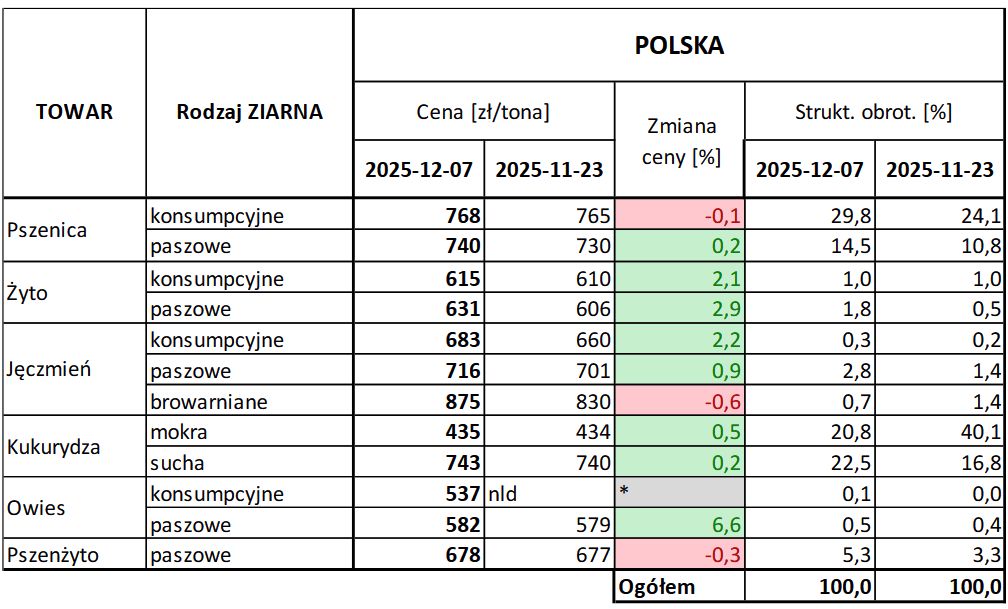 Według danych Zintegrowanego Systemu Rolniczej Informacji Rynkowej (ZSRIR), średnie krajowe ceny zakupu ziarna w przedsiębiorstwach skupujących zboża kształtują się aktualnie tak: