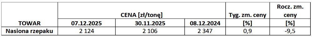 Średnia krajowa cena zakupu netto nasion rzepaku w zakładach tłuszczowych (w ramach zawartych kontraktów i poza nimi) to: