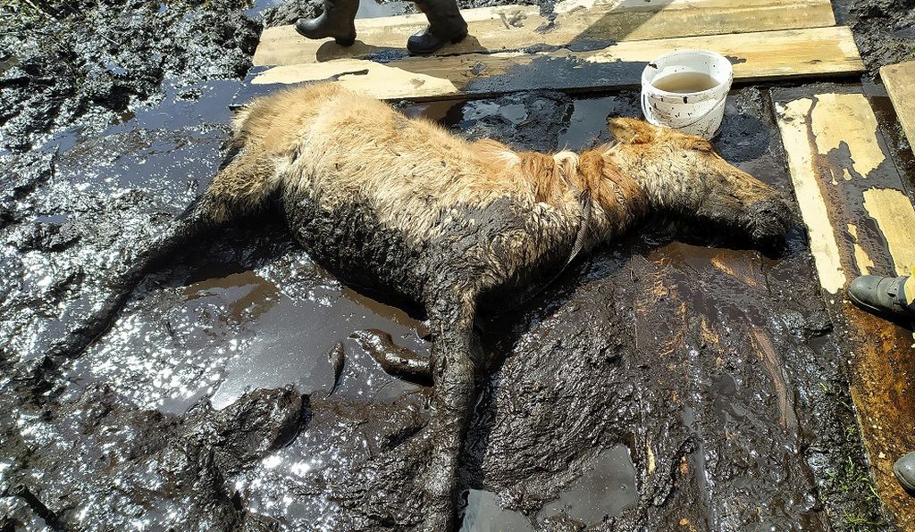 O pomoc poprosił właściciel, który mimo prób nie był w stanie wyciągnąć zwierzęcia z błota. Prawdopodobnie koń został przepłoszony przez jakieś dzikie zwierzę i mimo, że dobrze zna pastwisko, znalazł się w miejscu, które dotychczas omijał.