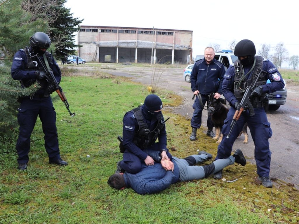 "Następnie załoga drogówki podczas patrolu w miejscowości Włostów zauważyła pojazd osobowy o wyróżnikach tablic rejestracyjny spoza Unii Europejskiej i przystąpiła do jego zatrzymania do kontroli. Kierujący nie reagował na wydawane polecenia i kontynuował jazdę – stracił nad nim panowanie i uderzył w kombajn zbożowy. Pasażer uciekł, pozostawiając rannego kierowcę. W wyniku podjętych czynności policjanci zatrzymali sprawcę podłożenia ładunku wybuchowego pod budynek. Zatrzymany trafił do policyjnej celi a na miejscu zdarzenia wykonane zostały czynności procesowe" – relacjonuje ćwiczenia opatowska KPP.