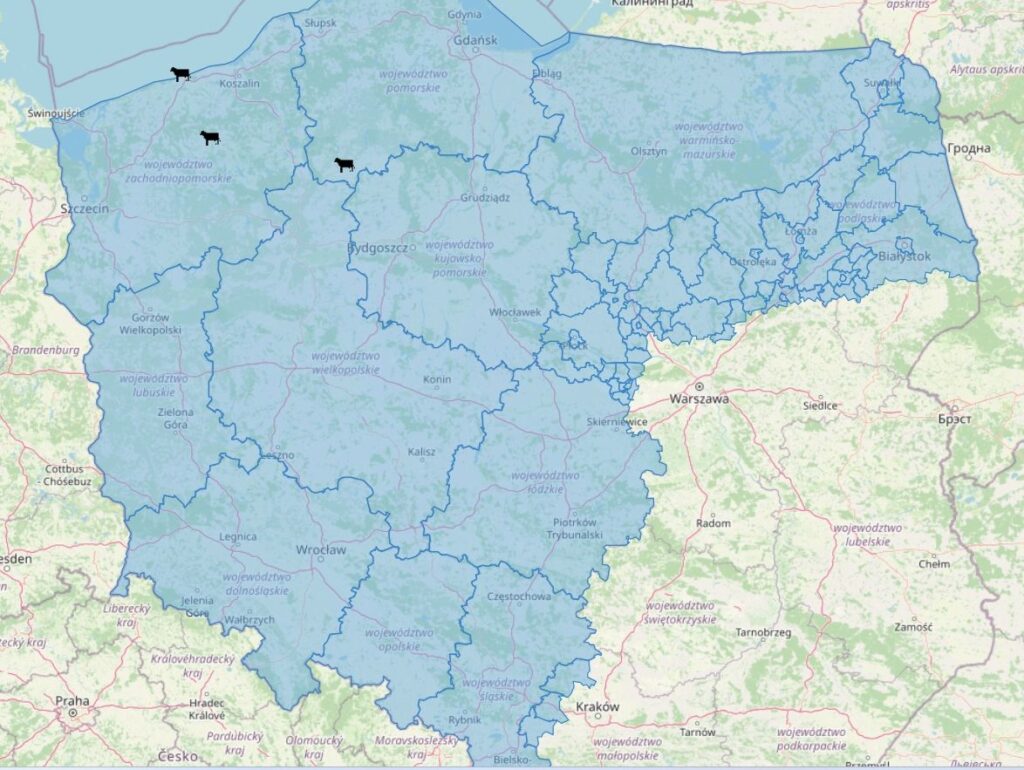 Choroba niebieskiego języka w Polsce – ogniska w 3 stadach