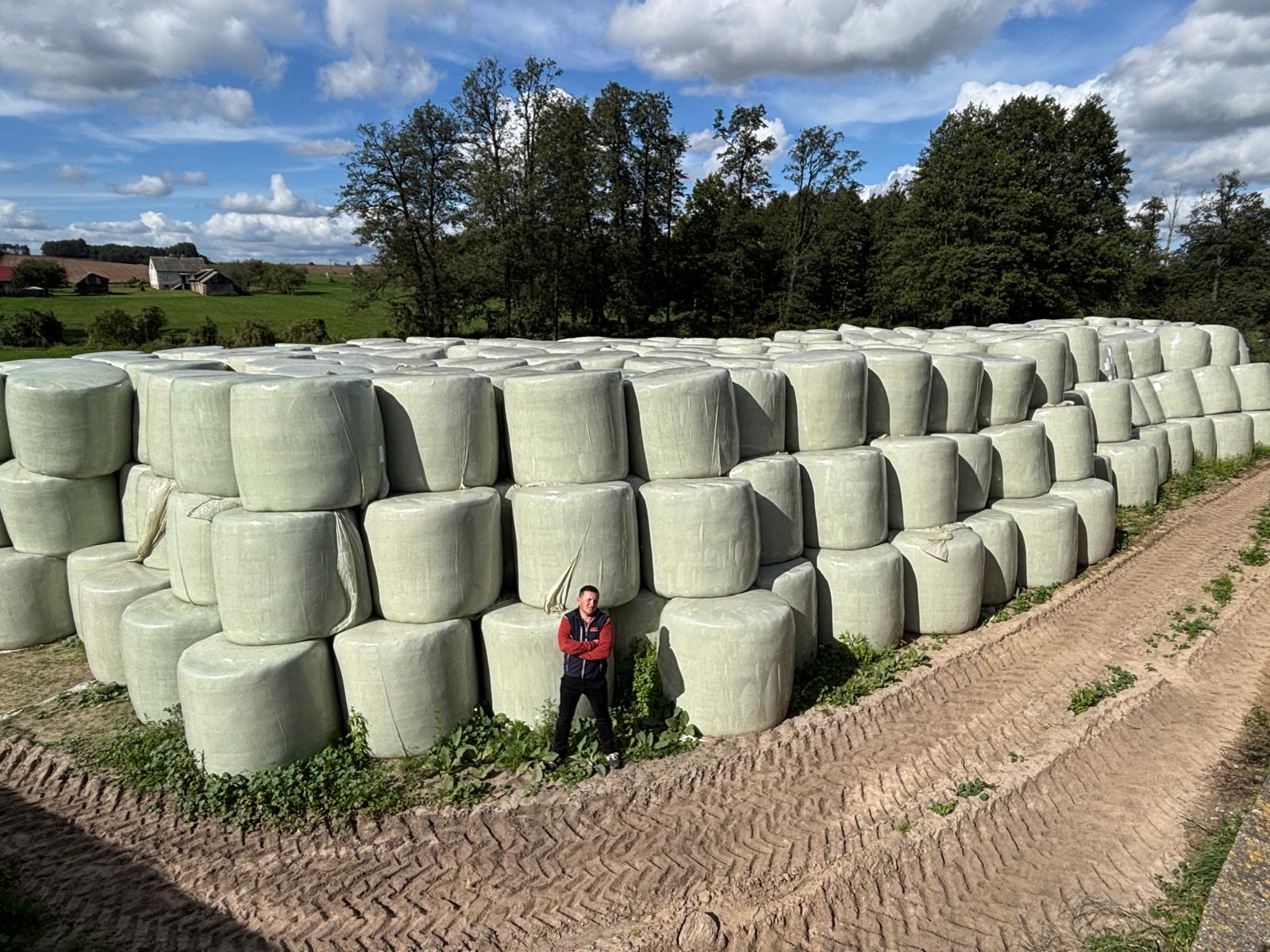 Włodki – spokojna wieś w województwie podlaskim niedaleko Piątnicy, a w niej gospodarstwo Pana Cezarego Chludzińskiego. Pan Czarek wraz z żoną i rodzicami zajmuje się hodowlą ponad stu krów dojnych. Aby wyżywić stado posiada 50 ha łąk. Podczas naszego pierwszego spotkania zaintrygowało mnie to, że w odróżnieniu od aktualnego trendu na rynku tak duży hodowca rezygnuje ze sporządzania kiszonki w pryzmach na rzecz bel. Do pracy nabył praso-owijarkę McHale Fusion 4 Plus oraz folię do prasy Baletite oraz folię do owijarki Silotite PRO 2000.