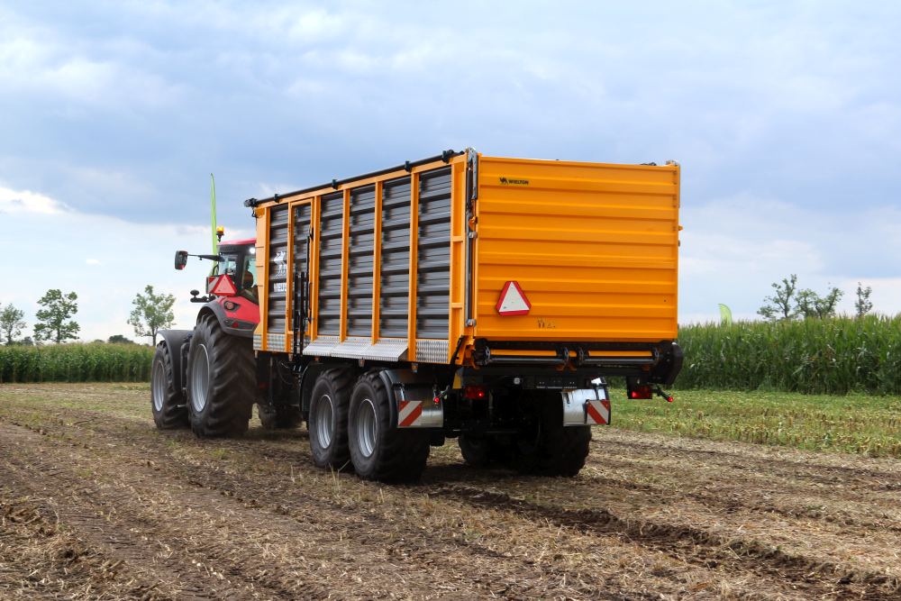 Zestaw dostarczyła firma Toral z Gostynia. Jej skrzynia ładunkowa mieści 40 m3, a techniczna ładowność to 18 ton. Górna część przedniej ściany jest opuszczana hydraulicznie co ułatwia pracę podczas wykonywania tzw. przecinki, kiedy ciągnik z przyczepą jadą za sieczkarnią. Dyszel jest wyposażony w hydropneumatyczny układ amortyzacji. Przenośnik podłogowy jest zbudowany z 4 łańcuchów z poprzecznymi listwami. Opcjonalnym wyposażeniem są wałki dozujące materiał. Na tandemowym, skrętnym podwoziu typy Dolly były zamocowane opony w rozmiarze 650/60 R22,5.