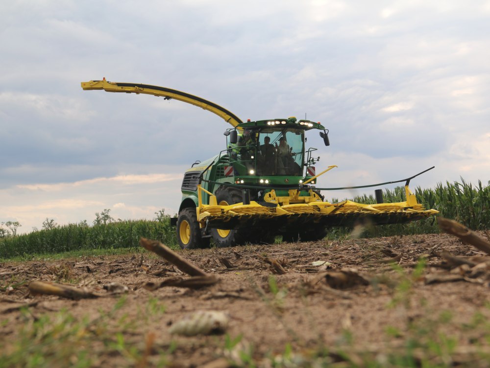 Jest ona napędzana przez 18-litrowy silnik JD18X o mocy maksymalnej 765 KM. Maksymalna prędkość transportowa jaką można osiągnąć na drodze to 40 km/h. Na wejściu do zespołu rozdrabniającego są zamocowane 4 walce wciągające. Oprócz standardowego wykrywacza metalu można zamówić również czujnik kamieni. Bęben tnący ma szerokość 850 mm i średnicę 670 mm. Dostępne warianty liczby noży to: 40, 48, 56 lub 64 sztuki. Długość sieczki, zależnie od ich liczby można regulować pomiędzy 3 a 25 mm. Walce zgniatacza również mogą być wykonane z piłokształtną powierzchnią, a różnica prędkości obrotowej może wynosić 40 lub 50%. Szerokość robocza przystawki również wynosiła 7,5 metra czyli 10 rzędów kukurydzy. Na rurze wylotowej był zamontowany również czujnik jakości plonu, który wykorzystując technologię bliskiej podczerwieni analizuje zawartość składników w sieczce.
