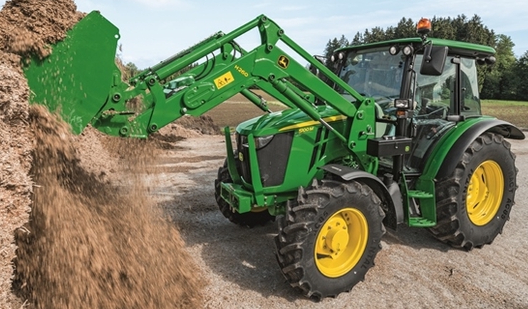 Dla ciągników serii John Deere 5M dostępne są ładowacze czołowe John Deere H260 lub H310 (fot. firmowe)