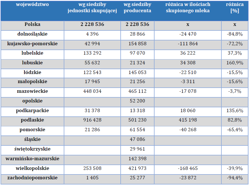 Zmiany widać również na poziomie regionów. Najwięcej mleka ubyło z województwa wielkopolskiego – 168,5 mln l oraz kujawsko-pomorskiego – 111,9 mln l. Natomiast inne regiony zwiększają znaczenie, ponieważ surowiec przepływa do silniejszych ośrodków.