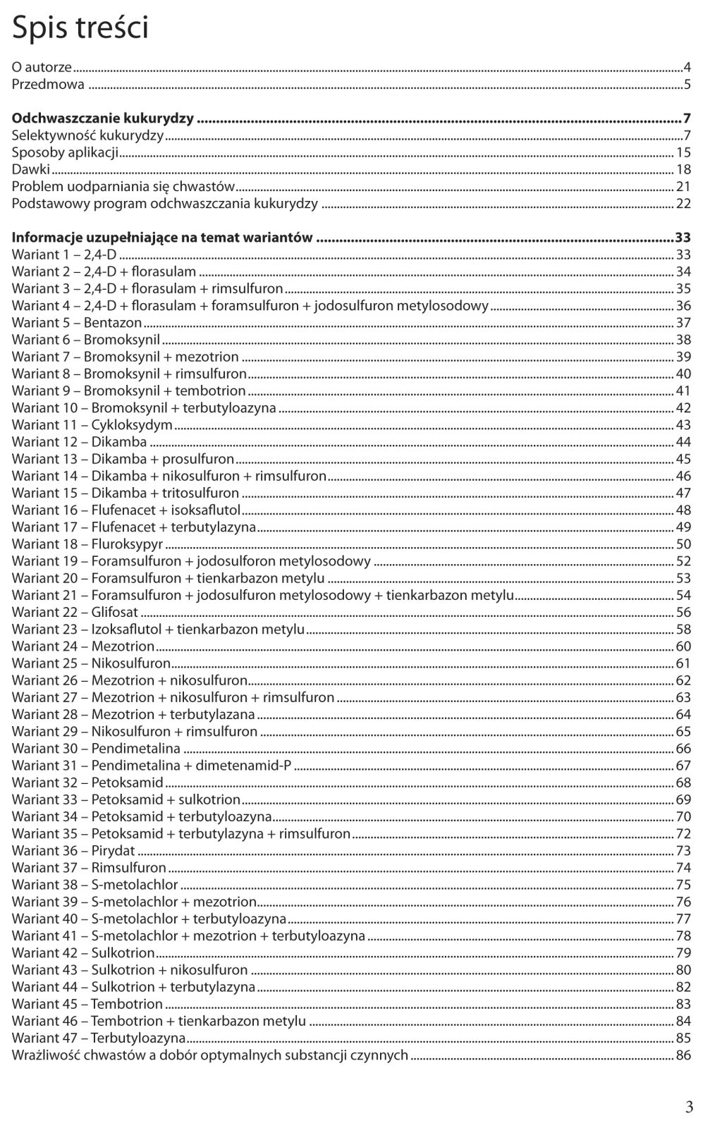 Istotne tematy, jakie czytelnik znajdzie w tym opracowaniu to m.in.: wrażliwe gatunki chwastów, gatunki chwastów w kukurydzy , wrażliwość chwastów na stosowane substancje czynne, wpływ warunków klimatycznych na zabieg, uodpornianie się chwastów, selektywność kukurydzy, fitotoksyczność stosowanych środków, dawki dzielone.