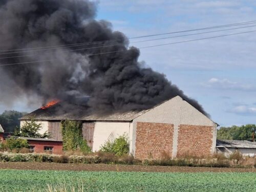 Stodoła w ogniu. Słup dymu było widać z dużej odległości
