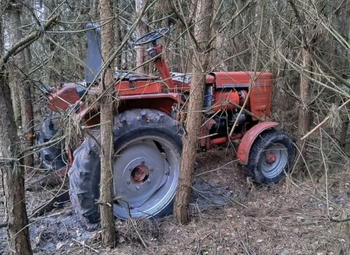 Skradziony ciągnik ukryty w lesie. Dwaj młodzieńcy usłyszeli zarzuty