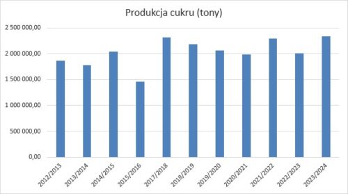 Resort rolnictwa szacuje produkcję cukru w Polsce w sezonie 2023/24 r. na 2,4 mln ton