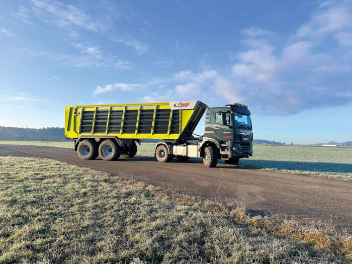 Technika rolnicza Fliegl Cargos 800 Niemiecki producent z Mühldorf rozszerza ofertę rozwiązań typu AgriTruck. Nowością jest naczepa w postaci wozu silosowego z hydraulicznie napędzaną podłogą łańcuchowo-listwową, przystosowana do sprzęgania z rolniczymi ciągnikami siodłowymi.