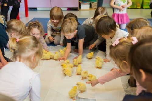Pisklęta w przedszkolu. Maluchy poznały etap rozwoju kurcząt