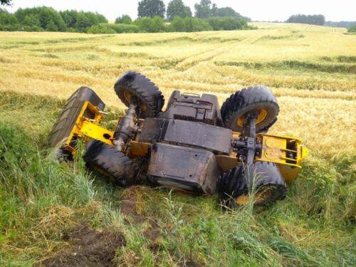 Wywrócona ładowarka. Operator chciał uniknąć zderzenia
