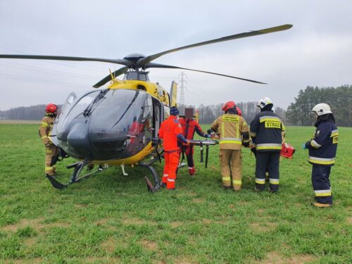 Traktorzysta trafił śmigłowcem do szpitala