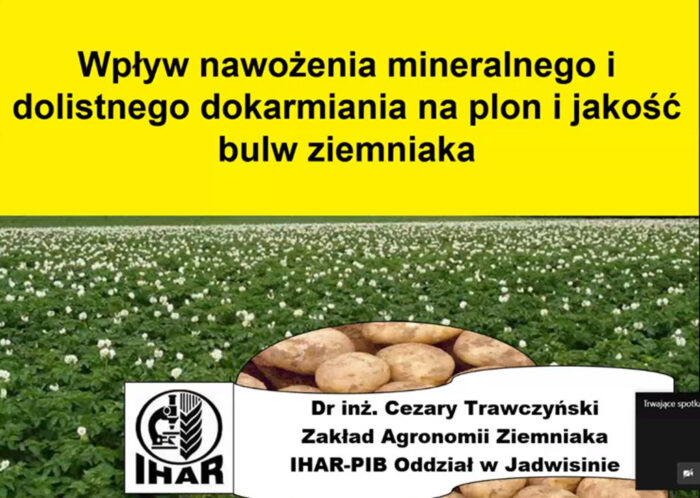 Okopowe Nawożenie a plonowanie i jakość ziemniaka Zagadnienie to omówił na spotkaniu naukowym Warszawskiego Oddziału PTA dr inż. Cezary Trawczyński. Ze względu na pandemię miało ono formę zdalną.