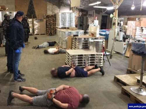 Nielegalna fabryka papierosów była prowadzona na terenie zakładu rolno-hodowlanego w województwie wielkopolskim. Funkcjonariusze wkroczyli do obiektu zaskakując osoby produkujące tam papierosy. Zatrzymano 10 osób.