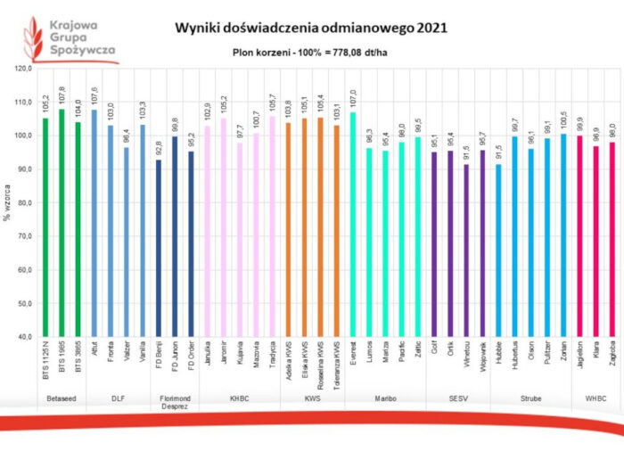 Okopowe Burak cukrowy: wyniki doświadczeń odmianowych KGS 2021 W sezonie 2021 w doświadczeniach odmianowych udział wzięło 36 odmian z 9 firm nasiennych oferujących na polskim rynku nasiona odmian buraka cukrowego.
