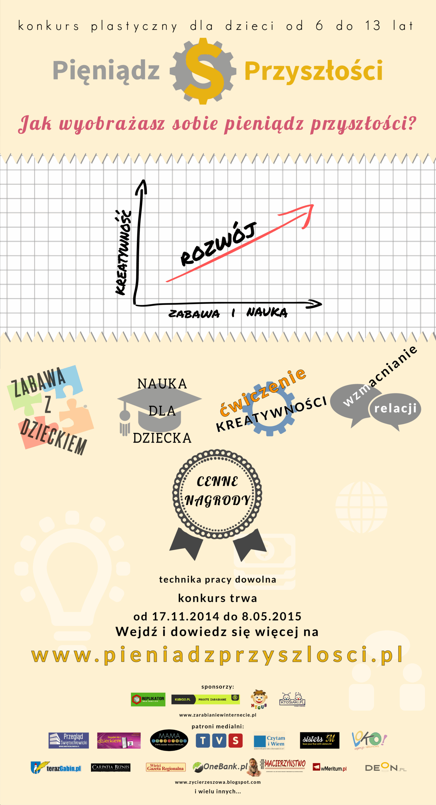 Z branży Pieniądz przyszłości. Konkurs dla najmłodszych Świetna informacja dla rodziców i ich dzieci! Trwa konkurs plastyczny, łączący zabawę i naukę. Temat prac to: „jak wyobrażasz sobie pieniądz przyszłości?”. Do udziału zapraszamy wszystkie dzieci z całej Polski w wieku od 6 do 13 lat.