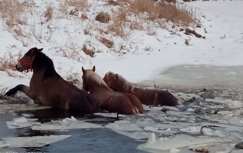 Konie w lodowatej wodzie. Strażacy znów ratowali zwierzęta