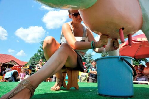 Wyłoniono nowych mistrzów w dojeniu sztucznej krowy