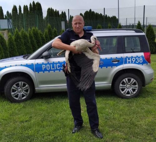 Symbol polskiej wsi – bocian – znalazł się w śmiertelnej opresji, gdy zaplątał się w sznurek i zawisł na drzewie. Do pomocy mu zostali wezwani strażacy, którzy skorzystali ze swojego specjalistycznego sprzętu.