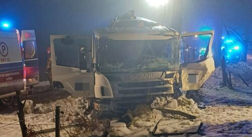 Ranny kierowca ciężarówki z mlekiem. Chciał uniknąć zderzenia z dziką zwierzyną