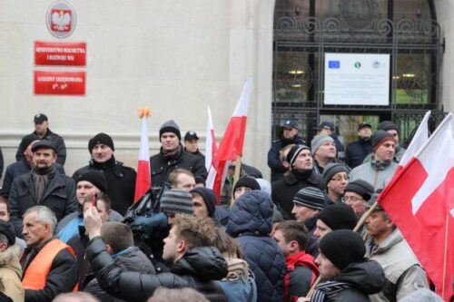 Rolnicy przed ministerstwem: chcemy dymisji Sawickiego