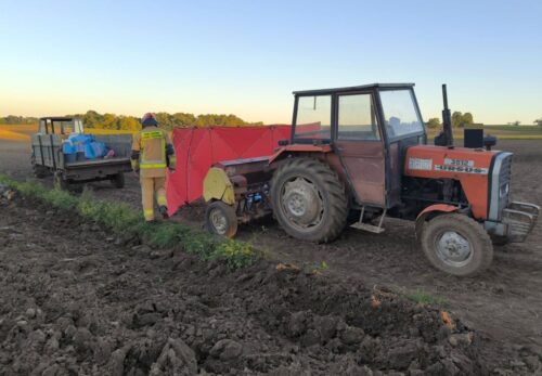 Mężczyzna przesypywał zboże do siewnika. Doszło do tragedii