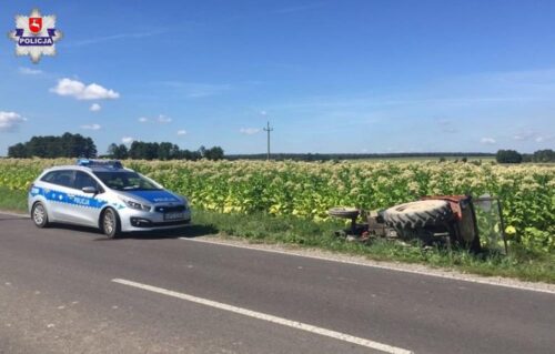 Ukrainiec kierujący busem najechał na tył traktora z przyczepą. Uderzony ciągnik wywrócił się do rowu. Jego kierowca doznał obrażeń ciała i został przetransportowany do szpitala. Policjanci ustalają okoliczności zdarzenia oraz apelują o rozwagę na drodze.
