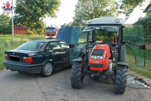 Ciągnik kontra bmw. Traktorzysta wylądował w szpitalu