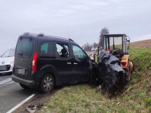 Auto wpadło na ciągnik. Policja wlepiła mandat traktorzyście