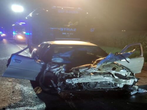 Opel wjechał w ciągnik rolniczy. Kobieta w ciąży trafiła do szpitala