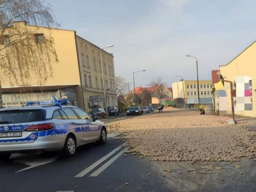 Bele kukurydzy spadły na auto. Policja apeluje ws. zabezpieczania ładunków