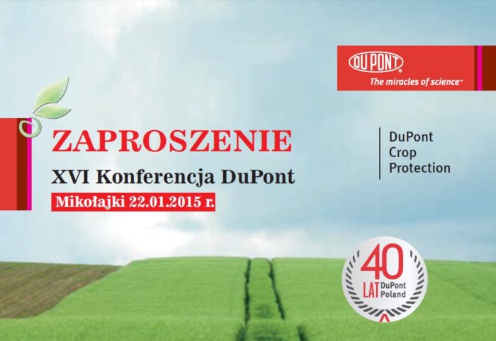 Z branży Cykl konferencji na 40-lecie obecności DuPont w Polsce Firma DuPont działa na polskim rynku od 1975 roku. W tym czasie stale rozwija nie tylko swoją ofertę dla rolnictwa, ale również zacieśnia współpracę z producentami rolnymi.
