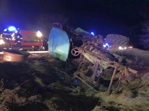 44-latek utknął w wywróconym ciągniku. Alkomat wiele wyjaśnił