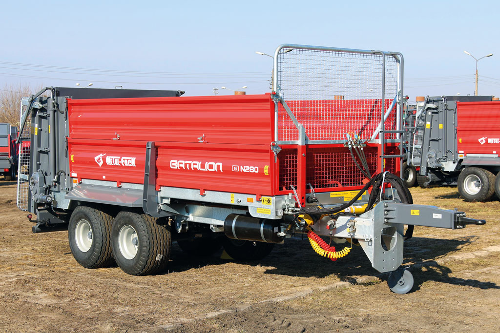 Rolnicy poszukujący niedużego rozrzutnika obornika, którego szeroki rozstaw kół pozwala pracować w terenach pagórkowatych, powinni rozważyć propozycję firmy Metal-Fach. To Batalion z cynkowaną ramą, drewnianą podłogą i burtami, które można odchylić lub zdemontować.