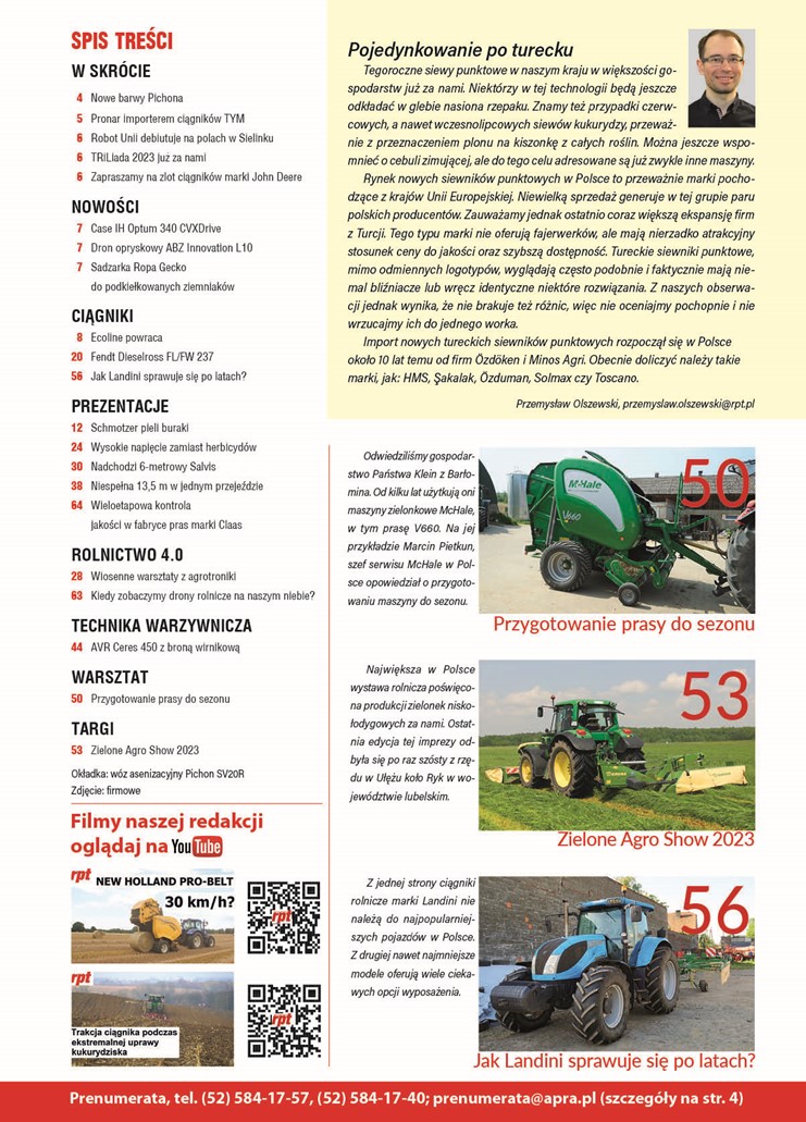 Miesięcznik Rolniczy Przegląd Techniczny – wydanie 2/2023. Wydawca APRA sp. z o.o.