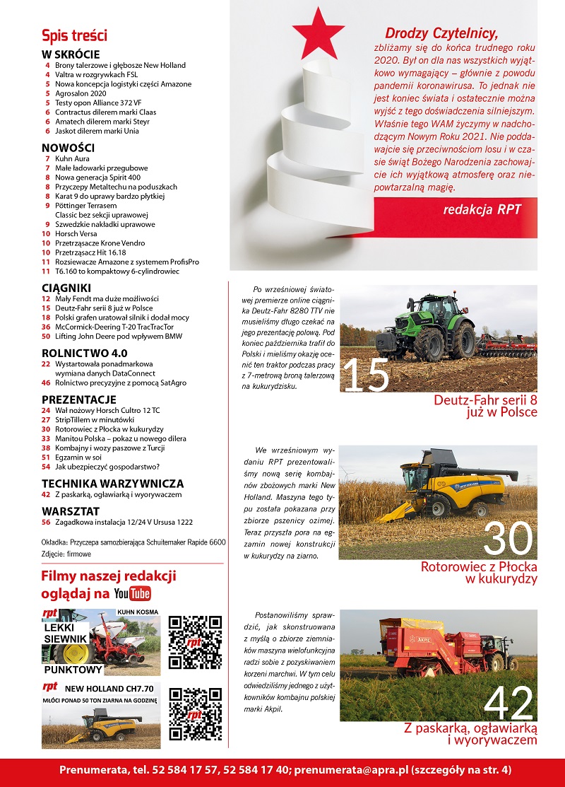 Magazyn Rolniczy Przegląd Techniczny 4/2020. Wydawca APRA sp. z o.o.