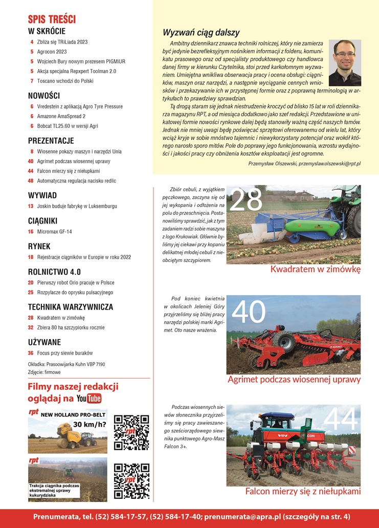 Miesięcznik Rolniczy Przegląd Techniczny – wydanie 2/2023. Wydawca APRA sp. z o.o.