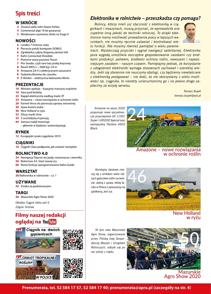 – nowościach na rok 2020 marki Amazone w zakresie opryskiwaczy ,