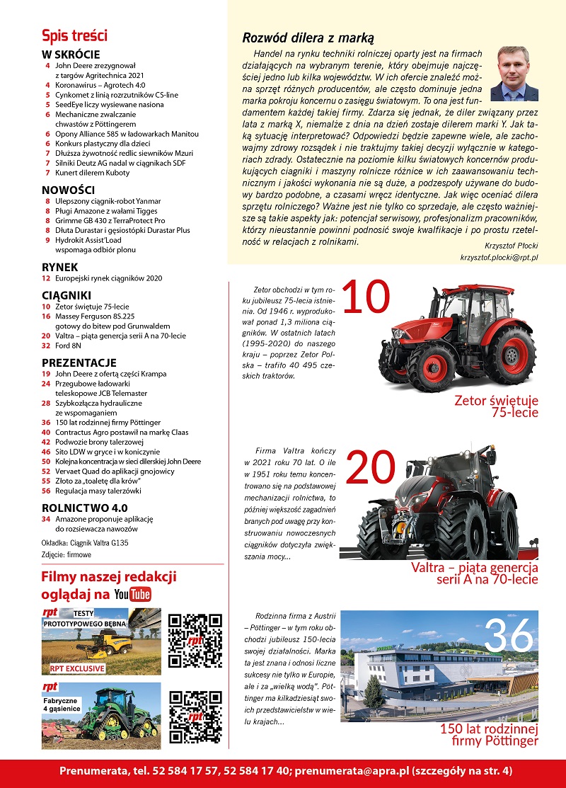 Magazyn Rolniczy Przegląd Techniczny 4/2020. Wydawca APRA sp. z o.o.