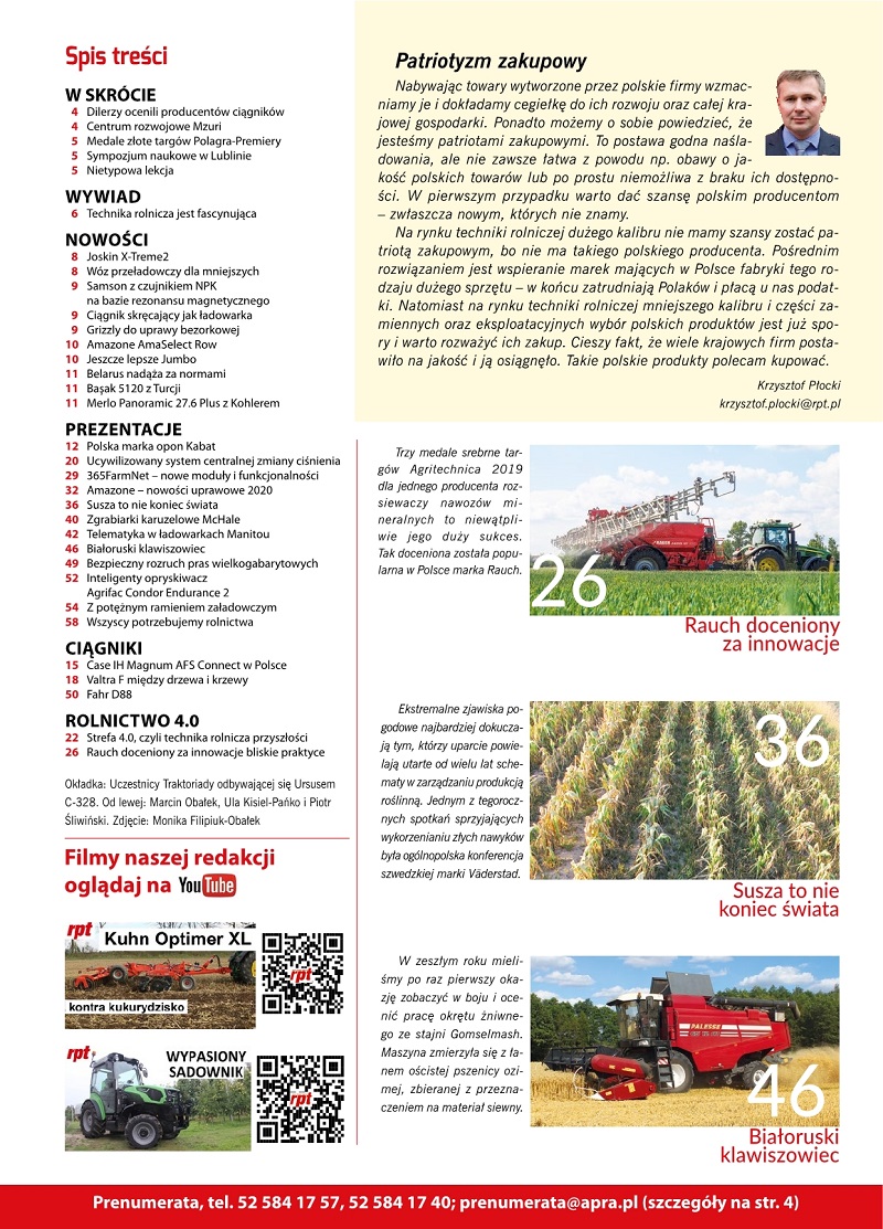 – nowościach uprawowych na sezon 2020 firmy Amazone,