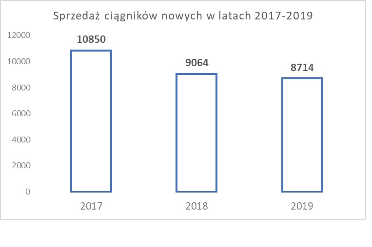 Z danych Polskiej Izby Gospodarczej Maszyn i Urządzeń Rolniczych wynika, że w 2019 r. zarejestrowano 8714 nowych ciągników kupionych w Polsce. To o 350 traktorów mniej w porównaniu do roku 2018, czyli spadek wyniósł 3,9%.